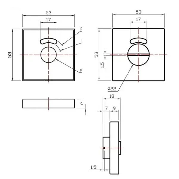 vierkant 53×53 mm. Materiaal: rvs 304. zwart RAL9005 gepoedercoat.