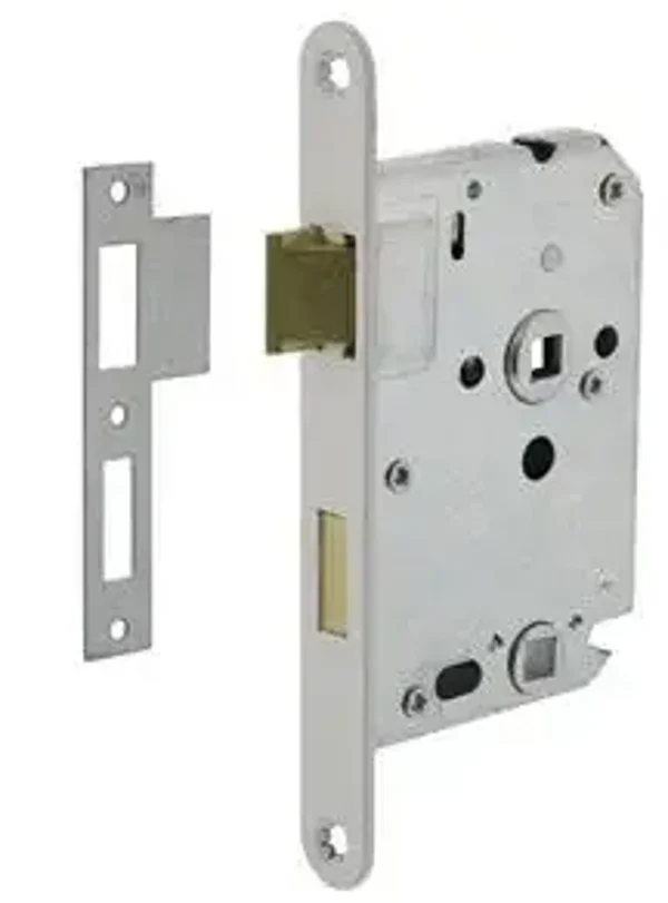 Dit slot wordt geleverd in toilet-/badkamer uitvoering op 63 mm met 8mm stift. De sloten van Intersteel en de bijbehorende sluitplaten zijn verkrijgbaar in diverse uitvoeringen en draairichtingen. De doornmaat van dit slot is 50 mm en wordt geleverd inclusief sluitplaat en voorplaat. De zwarte voorplaat heeft een afmeting van 174 x 20 mm (hxb). U kunt dezelfde inbouw- en freesmaten gebruiken als een standaard woningslot. De dagschoot van dit slot is omwisselbaar; dat wil zeggen dat deze voor zowel een linksdraaiende deur als een rechtsdraaiende deur geschikt is.