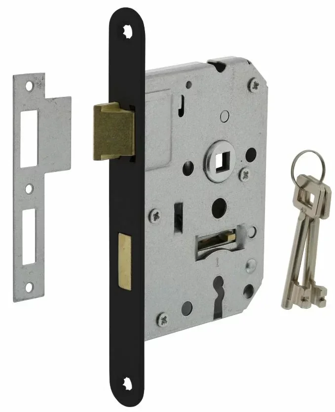 Dit slot is afsluitbaar met een sleutelgat maat op 55 mm en wordt geleverd met 2 klavier sleutels. De sloten van Intersteel en de bijbehorende sluitplaten zijn verkrijgbaar in diverse uitvoeringen en draairichtingen. De doornmaat van dit slot is 50 mm en wordt geleverd inclusief sluitplaat en voorplaat. De zwarte voorplaat heeft een afmeting van 174 x 20 mm (hxb). U kunt dezelfde inbouw- en freesmaten gebruiken als een standaard woningslot. De dagschoot van dit slot is omwisselbaar; dat wil zeggen dat deze voor zowel een linksdraaiende deur als een rechtsdraaiende deur geschikt is.