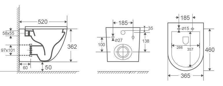 Hartmaat bevestiging closet 185