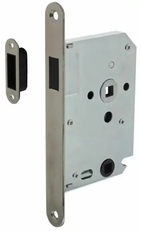 Dit badkamer-/toiletslot werkt op basis van magnetisme. Bij het sluiten van de deur wordt de dagschoot door magneten uitgetrokken waardoor de deur vergrendelt. De deur wordt gewoon met de deurklink geopend, maar wanneer hij geopend is, steekt de dagschoot niet meer uit. Dit zorgt niet alleen voor een strakke afwerking, u voorkomt hiermee ook beschadigingen aan het kozijn of dat u er onverhoopt achter blijft haken. Bij de badkamer-/toiletslot wordt de dagschoot geblokkeerd, waardoor een nachtschoot niet nodig is. Dit slot heeft een WC maat van 63/8 mm en de doornmaat is 50 mm. Hij wordt geleverd inclusief sluitplaat en zwarte voorplaat.